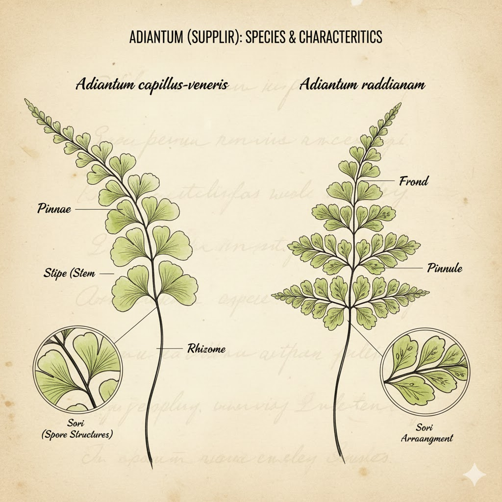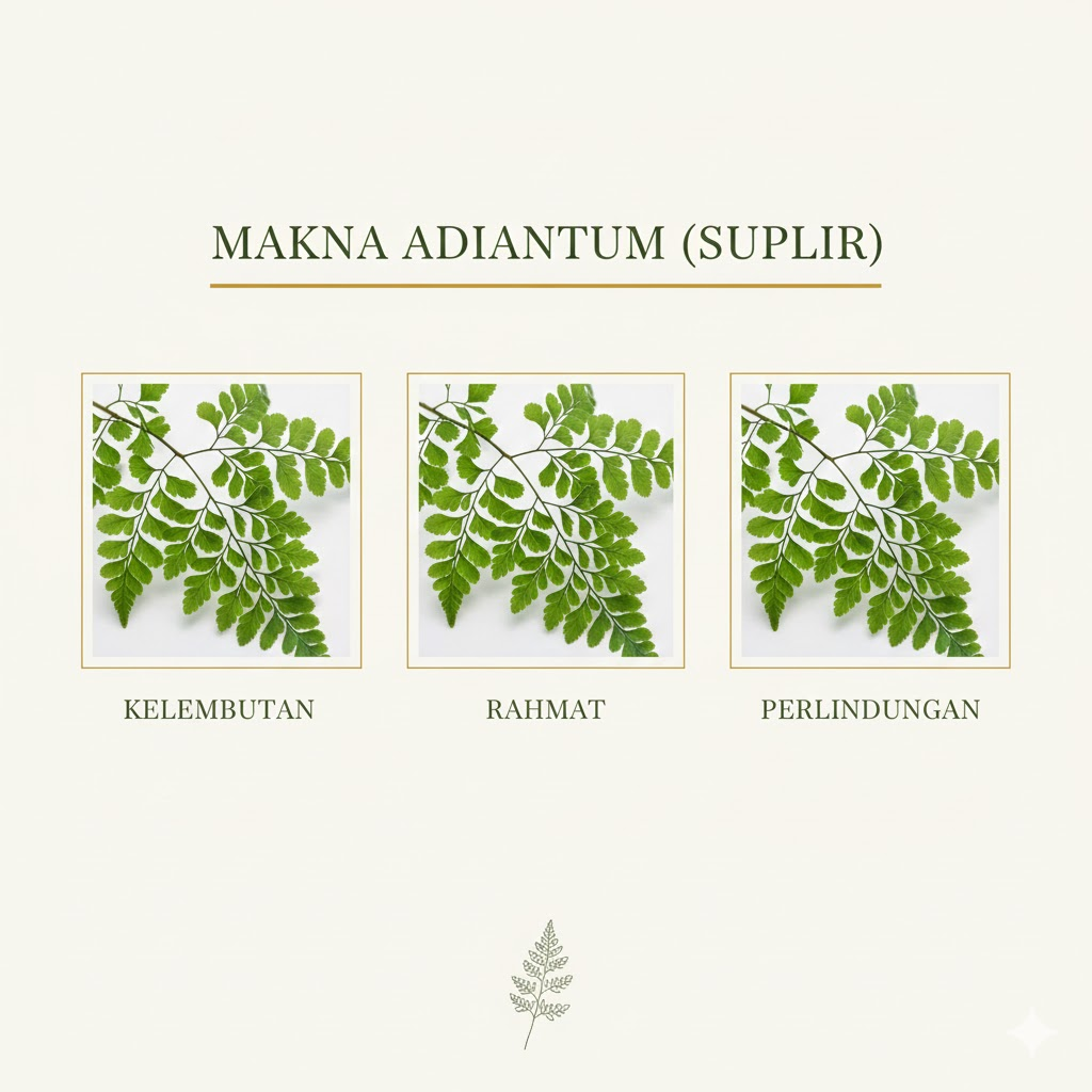 Suplir atau Adiantum adalah tanaman paku yang tumbuh di tempat lembap dan teduh. Sejak dulu, tanaman ini digunakan untuk dekorasi rumah dan ruang pertemuan karena tampilannya yang elegan dan segar. Karakteristik utama suplir adalah batangnya yang hitam dan sangat tipis, kontras dengan daun hijau mudanya yang halus. Fleksibilitas tanaman ini memungkinkan florist menggunakannya dalam berbagai gaya rangkaian, mulai dari klasik hingga kontemporer. Suplir telah menjadi simbol kehalusan, ketenangan, dan keindahan alami yang tidak berlebihan.