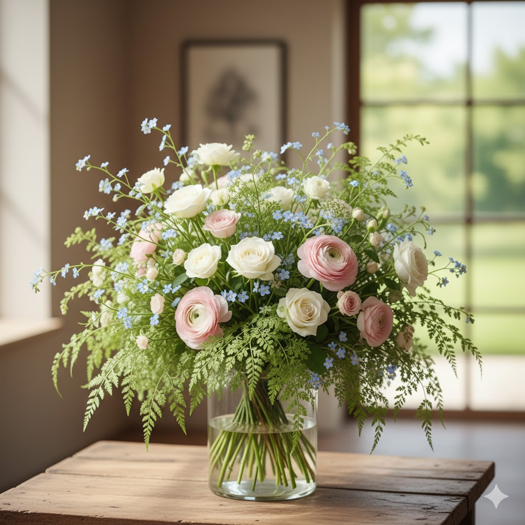 Ada beberapa jenis Bunga Suplir yang sering digunakan dalam floristry. Suplir Adiantum raddianum memiliki daun berbentuk kipas yang sangat populer karena tampilannya yang halus. Adiantum fragrans memiliki daun sedikit lebih besar dengan tekstur lembut yang memberi kesan natural. Ada pula Adiantum tenerum yang lebih tipis dan elegan, sering digunakan untuk rangkaian gaya modern. Masing-masing jenis memiliki karakter tersendiri sehingga florist dapat menyesuaikan pilihan dengan tema dan gaya rangkaian yang ingin dibangun.